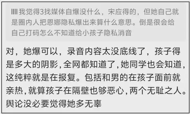 更令人不适的是,Q女士在发布的录音中,似乎有意无意地未对小朋友的名字进行消音处理。这一点,也让她被指责“一点也不无辜”。