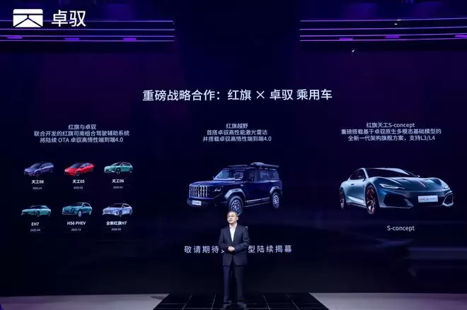 本次发布会上,卓驭宣布与中国一汽达成深度战略合作。在乘用车领域,双方联合开发的红旗司南组合驾驶辅助系统已在多款车型上量产,高悟性端到端4.0模型将于今年上半年通过OTA升级上线。下半年上市的红旗越野车将搭载卓驭的高性能激光雷达。本次车展亮相的红旗天工S概念车,则采用了基于卓驭原生多模态基础模型的全新一代架构,并搭载了L3/L4级智驾解决方案。