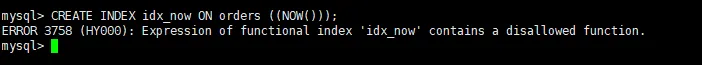 mysql> CREATE INDEX idx_now ON orders ((NOW()));