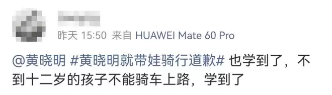 事实上,大量网友正是通过黄晓明此次分享,才首次明确知悉“未满12周岁禁止骑车上路”的规定。这起到了远超预期的正面警示作用。