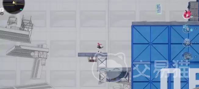 在对岸平台落地后,要立刻启用蓝色图纸转入二维状态,开始梯度式上升操作:先向上跳一格→切换黄色图纸旋转一次→再向上跳一格→再旋转一次……如此循环往复。每一次旋转,其实都在重构局部的重力矢量和支撑面方向,你就靠着这种巧劲,一层一层地往上攀升,最终抵达建筑的顶端。