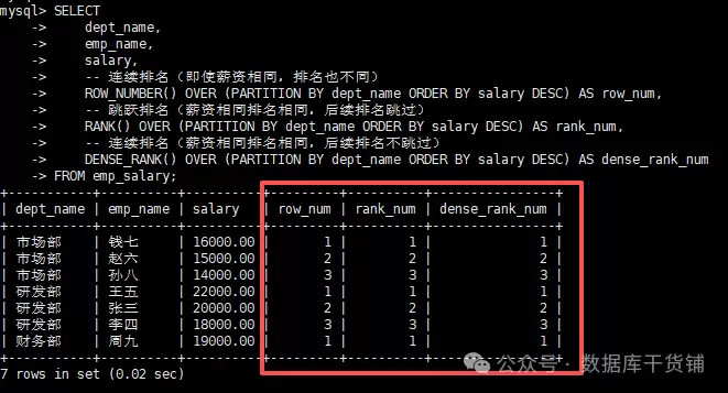 一个经典需求:给每个部门的员工按薪资从高到低排名,并了解三种排名函数的细微差别。