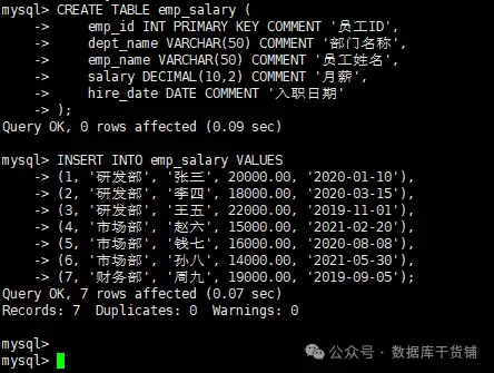emp_name VARCHAR(50) COMMENT '员工姓名',