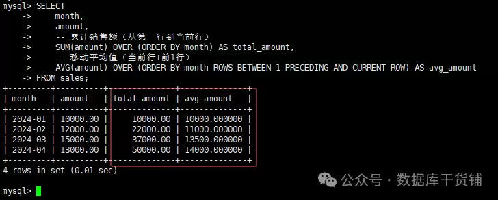 窗口函数的核心在于OVER()子句,它定义了计算的范围: