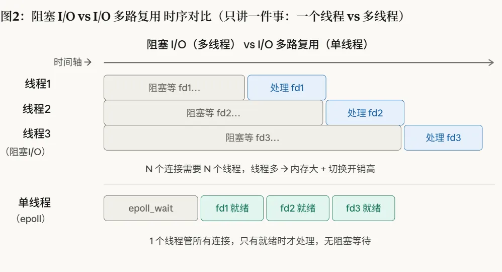 这是 Nginx、Redis、Netty 等高性能组件的核心模型。