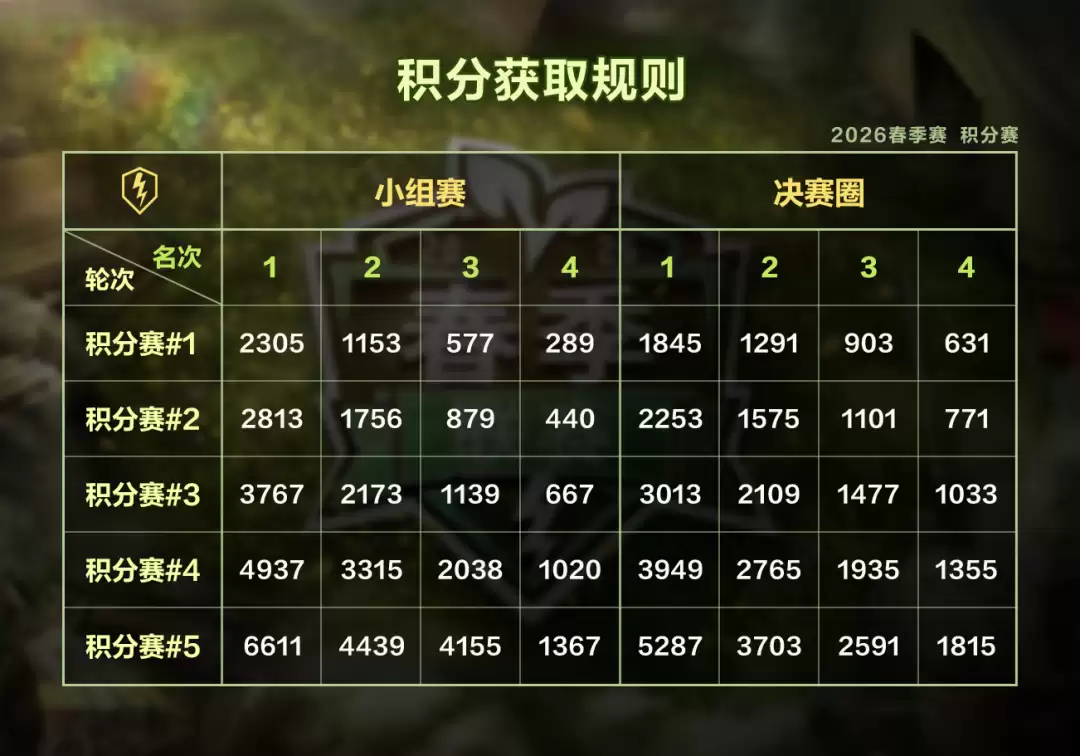 2026年春季联赛的积分赛共有5场,这是积累排名、迈向正赛的基石。