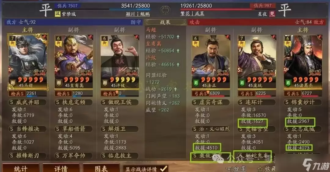 SP法正的“锦囊妙计”治疗兵力最低单体;