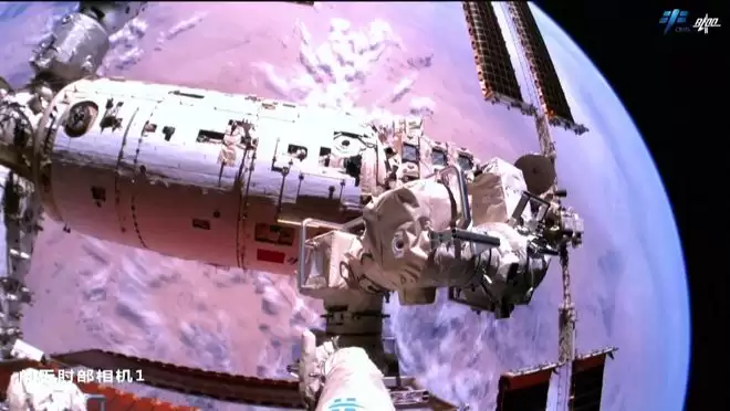 ▲中国空间站在轨运行(视频截图) 图据视觉中国