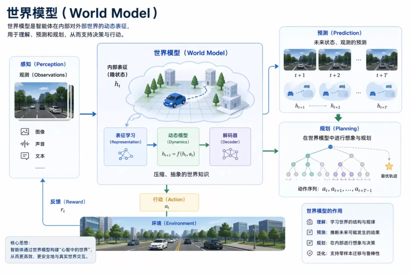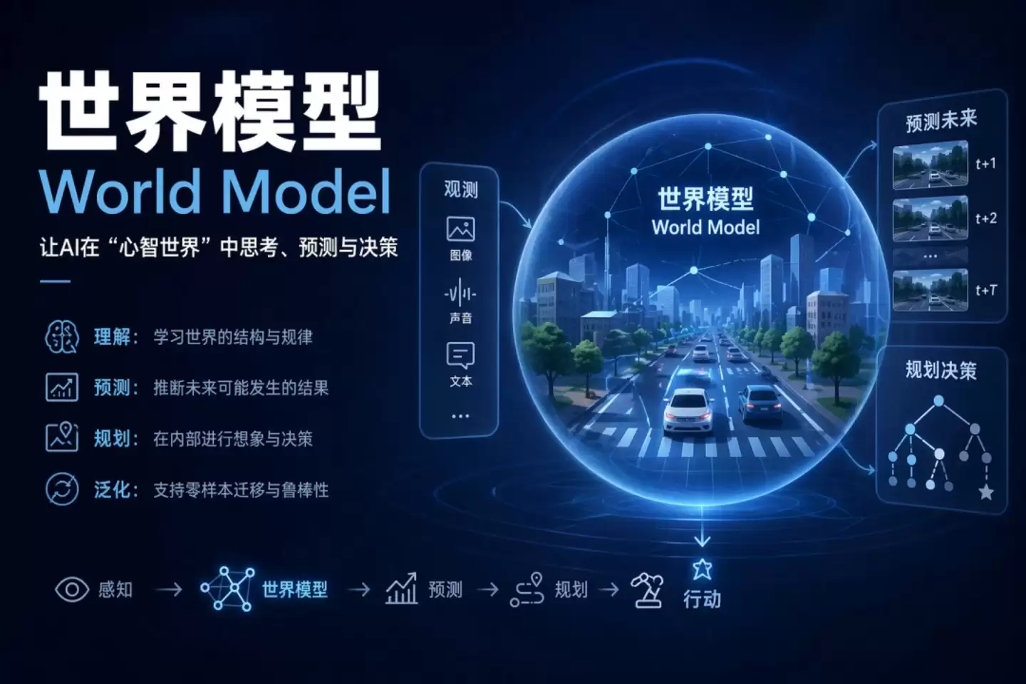 想想这些场景:让机器人规划一条从桌边绕过障碍物取杯子的路径,需要理解三维空间、物体形状质量、动作的力度与方向;让自动驾驶系统预测前车下一秒的位置,需要理解速度、加速度和驾驶员的潜在意图;让游戏中的AI角色做出合理行为,需要理解场景背后的因果逻辑,而不仅仅是画面像素的视觉连贯性。这些任务,语言建模的框架从根子上就不适合处理。