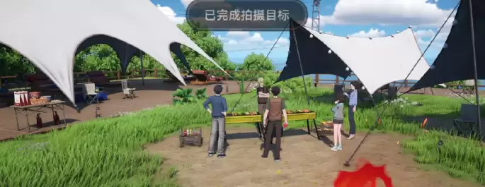 接下来,第二个拍摄地点在“湛望露营地”。最快捷的方式是使用传送点,直接定位到“rerorero电话亭”。传送出来后,顺着下坡路,沿着主干道一直往前走,追踪点就在附近。你的目标是火堆旁那群正在享受烤肉乐趣的人们,用镜头记录下这充满烟火气的瞬间即可。