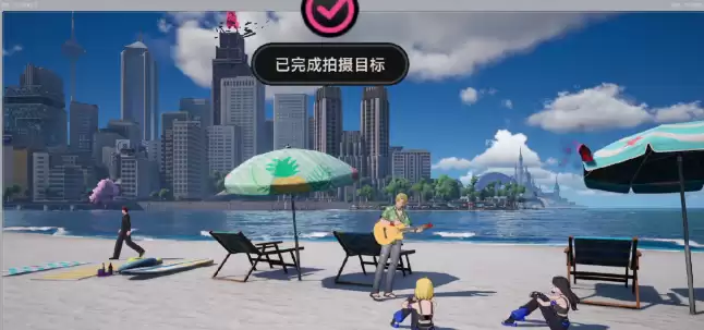 任务要求是捕捉三组不同的街头人物。第一站,前往海特洛市的海边沙滩。到达后,目光扫过沙滩,很容易就能发现露天太阳伞下那位沉浸在自己世界里的街头歌手,他正抱着吉他弹唱。对准他,按下快门,第一组拍摄就搞定了。注意,完成这一步后,需要先返回照相馆向比拉尔提交,才能激活后续的拍摄目标。