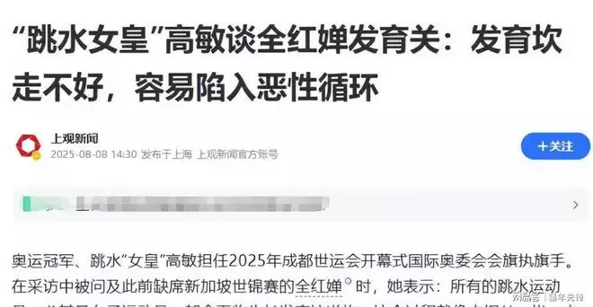第二次则是在2025年8月。彼时,全红婵的身形变化已开始显现,网络上关于“发胖”、“状态下滑”的讨论渐起。高敏在央视采访中,结合自身经历深刻指出:“所有女子跳水运动员都必须面对生长发育这道坎,过程如同走钢丝,一旦失衡就容易陷入恶性循环。”