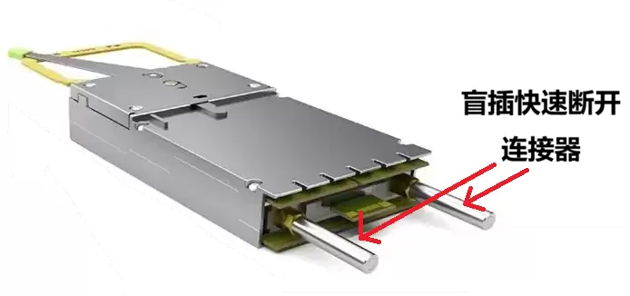 模块尾部两根不起眼的金属棒,正是液冷系统的盲插快接接头,负责冷却液的进出。它设计了500次的插拔寿命,防泄漏,并能与主机冷却系统无缝集成,流量还能根据功耗在0.25~0.7升/分钟间自动调节。