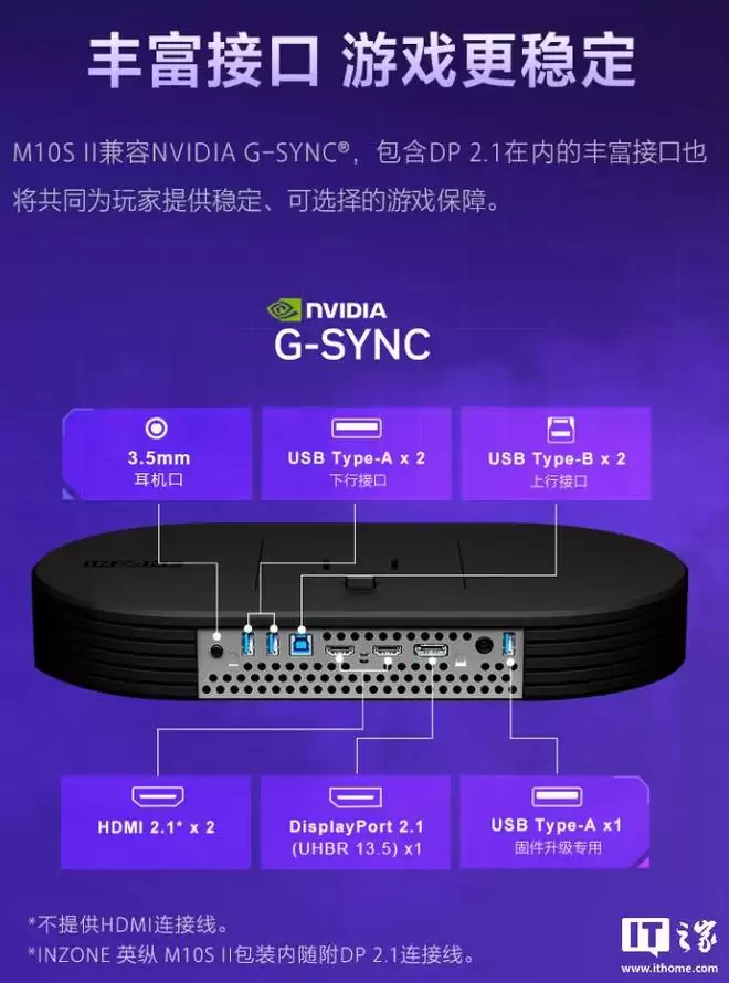 为了确保高性能下的稳定运行,显示器内部搭载了定制散热系统。同步技术方面,它兼容英伟达G-SYNC,能有效防止画面撕裂。接口配置也堪称豪华,提供了HDMI 2.1、DisplayPort 2.1、USB Type-A下行以及USB Type-B上行接口,充分满足了从游戏主机到PC,再到外设拓展的各种连接需求。
