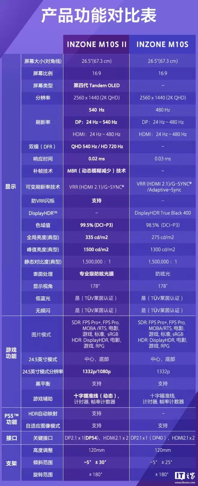 索尼INZONE英纵M10S II电竞显示器开售:26 5英寸OLED,双模高刷,售价8499元 高端电竞显示器市