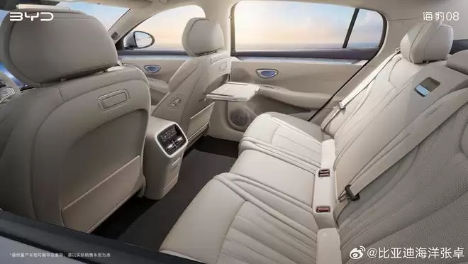 海豹08在舒适性配置上展现了旗舰车型的完备性。前排双零重力座椅、智能车载香氛系统、后排独立温区空调、后排商务小桌板及专属平板支架等配置,共同构建了覆盖商务出行与家庭休旅的全场景豪华体验。值得关注的是,其后排座椅具备肉眼可见的大角度倾斜设计,关于其是否提供电动调节功能,则需等待后续官方信息的确认。