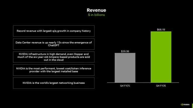 过去几个月,关于“AI泡沫”的争论在资本市场从未停歇。然而,英伟达刚刚交出的这份第四财季成绩单,用最硬核的数据,给整个产业情绪注入了一剂强心针。