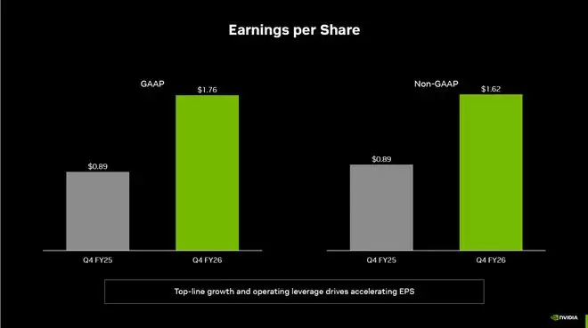 · 利润表现与定价权:季度净利润达到429.6亿美元(GAAP),同比激增94%,折合每股收益1.62美元。这个数字意味着,英伟达依然维持着令人咋舌的净利率水平。