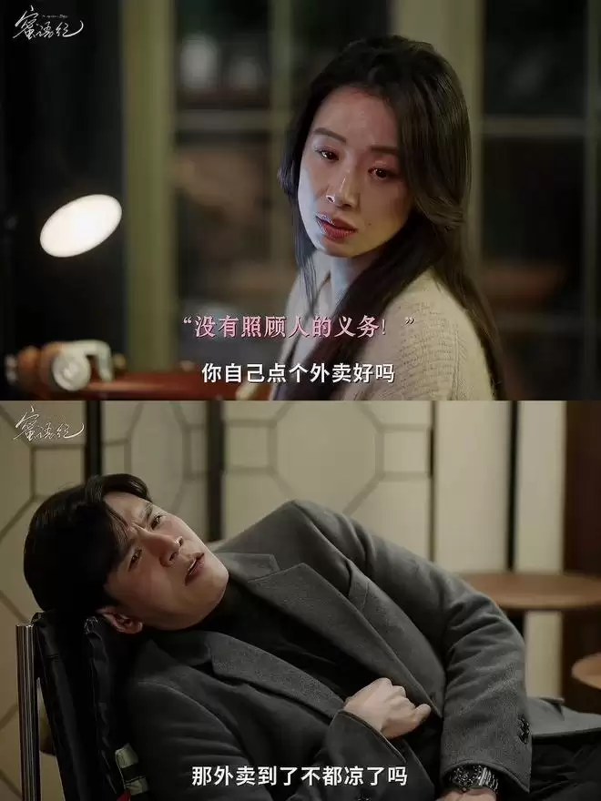 聂予诚的“报应”来得很快。过去十年,许蜜语把家里打理得井井有条,每日准备营养餐,悉心关心他的健康,用心经营着婚姻。而鲁贞贞呢?上位成功后,她迅速掌握了主动权,褪去柔弱的伪装,展现出精明利己的一面。她不可能为他“洗手作羹汤”,再婚后,聂予诚的生活变成了外卖常态。