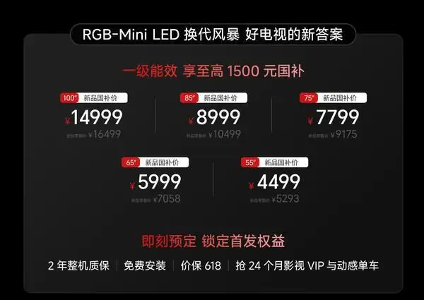 两款产品均享受以旧换新补贴、2年整机质保以及618价保服务。对于首发用户,海信还额外赠送影视VIP特权。购买75英寸及以上型号的前264名用户,甚至能获赠一台动感单车。显然,海信希望用一套“技术+价格+服务”的组合拳,在接下来的市场争夺中占据先机。