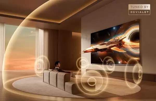 声音方面,海信选择了与知名声学品牌帝瓦雷合作,为E5S Pro打造了一套2.1.2声道的影院级音响方案。165W的峰值功率,结合专利的指向性环绕音技术,旨在为电影爱好者营造出更具包围感和沉浸感的声场体验。