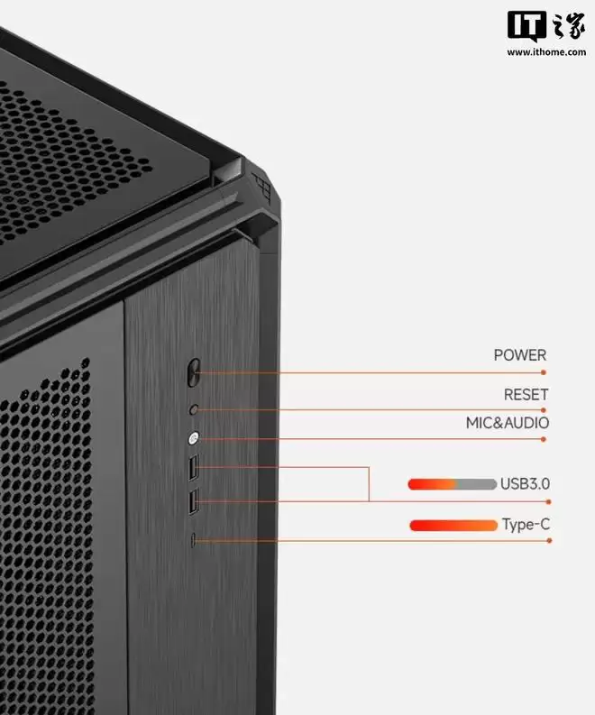 南岳SR700的核心优势在于其顶级的硬件兼容性。机箱不仅完美支持HTPX、SSI-EEB等服务器规格大板,对消费级的E-ATX、ATX、Micro-ATX及ITX主板也实现了全面兼容。结构上采用2.2mm铝合金主体框架结合1.2mm镀锌钢板,确保了机箱的刚性强度与高级质感。前面板I/O配置专业且实用:提供两个USB-A 3.0接口、一个高速USB-C接口以及一个3.5mm音频接口,充分满足日常高频连接需求。