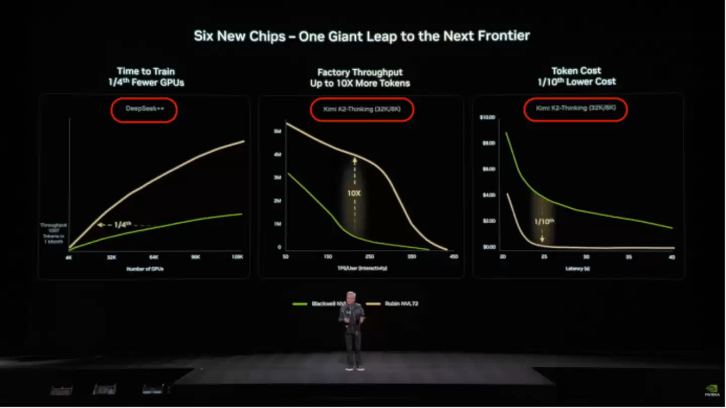 如今,它们是中国目前唯二总参数超过万亿且已公开权重的模型,也是最具国际影响力的中国AI代表。就连全球芯片巨头英伟达,在展示其下一代芯片性能时,选用的标杆模型也来自DeepSeek和Kimi。