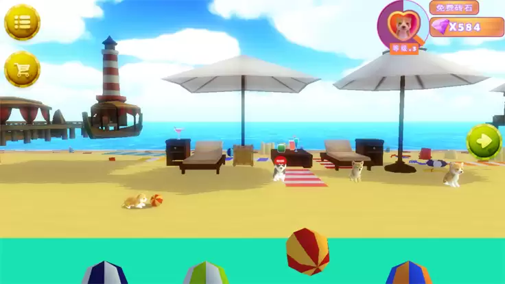 装扮海滩:通过游戏获得钻石,建立属于你自己的海滩。更有意思的是,你还能看到自己解锁的狗狗在沙滩上尽情玩耍。