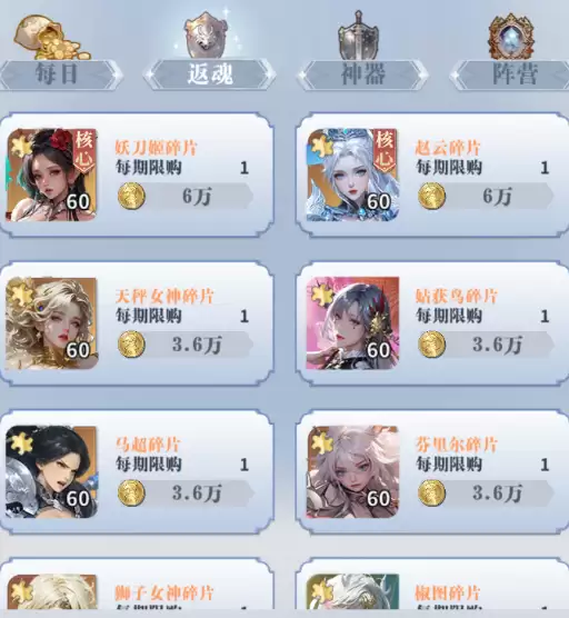 其次,目光要转向普通觉醒石。打折的必须拿下,不打折的则要看你的钻石储备是否宽裕。觉醒石对于女神战力和能力的提升至关重要,而目前白嫖途径实在有限。除了直接氪金,每日商店算是最稳定的来源了,挂机产出那点基本可以忽略。所以,只要能力允许,尽量买满。一天刷新五次购买机会,全拿下就是120个觉醒石,日积月累,差距就出来了。