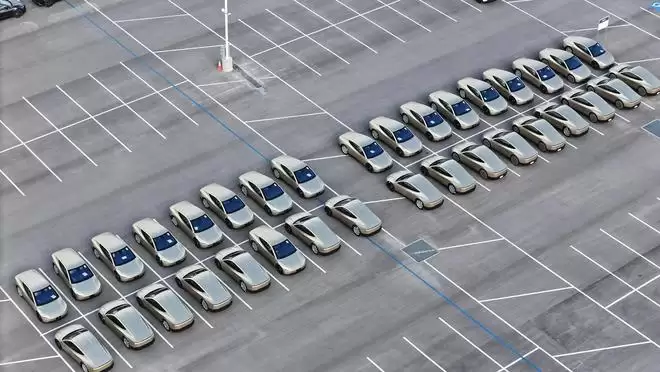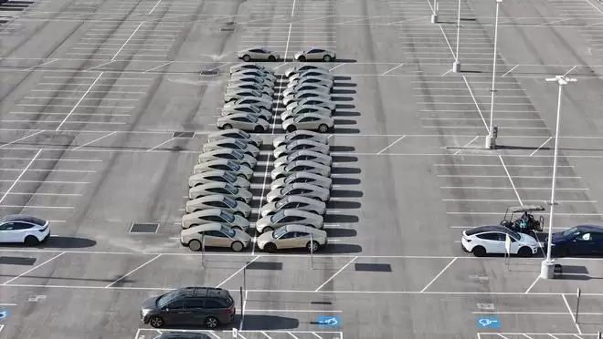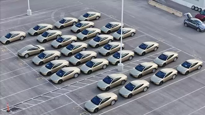 特斯拉Cybercab量产前奏:得州工厂外数十台实车现身 得州超级工厂外的景象,为特斯拉自动