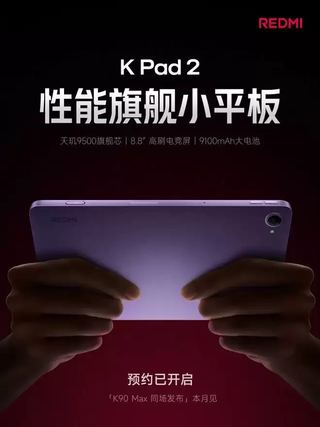 与K90 Max同期亮相的,还有Redmi K Pad 2新一代性能旗舰平板。其核心搭载天玑9500旗舰平台,采用8.8英寸这一被视为黄金便携尺寸的屏幕,并配备165Hz高刷新率电竞屏,明确指向追求高性能与移动便携性的用户群体。