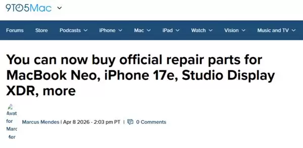 苹果自助维修商店扩展:MacBook Neo等新品零件开放,用户维修自主性提升 4月9日,苹果自助