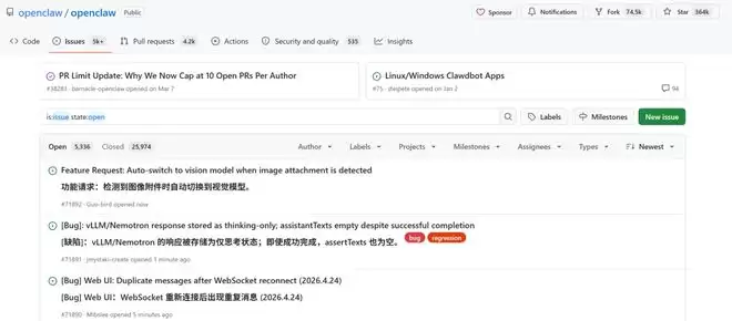 结果呢?一天之内,他那个拥有36万Star的开源巨兽仓库——openclaw/openclaw——里,超过5000个无效Issue被直接关闭,还有数千个在管道里排队等待“处决”。