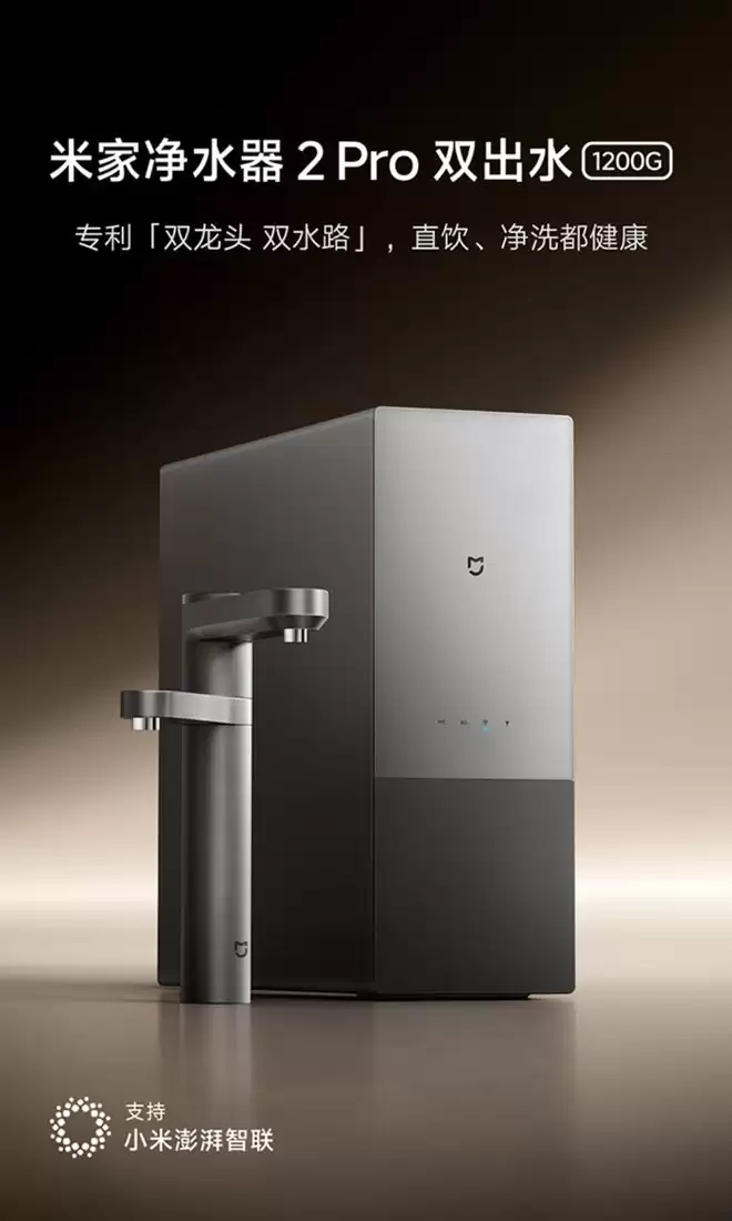 小米米家净水器 2 Pro 双出水 1600G 开售:专利双龙头设计,实现精准分质供水 小米米家净水