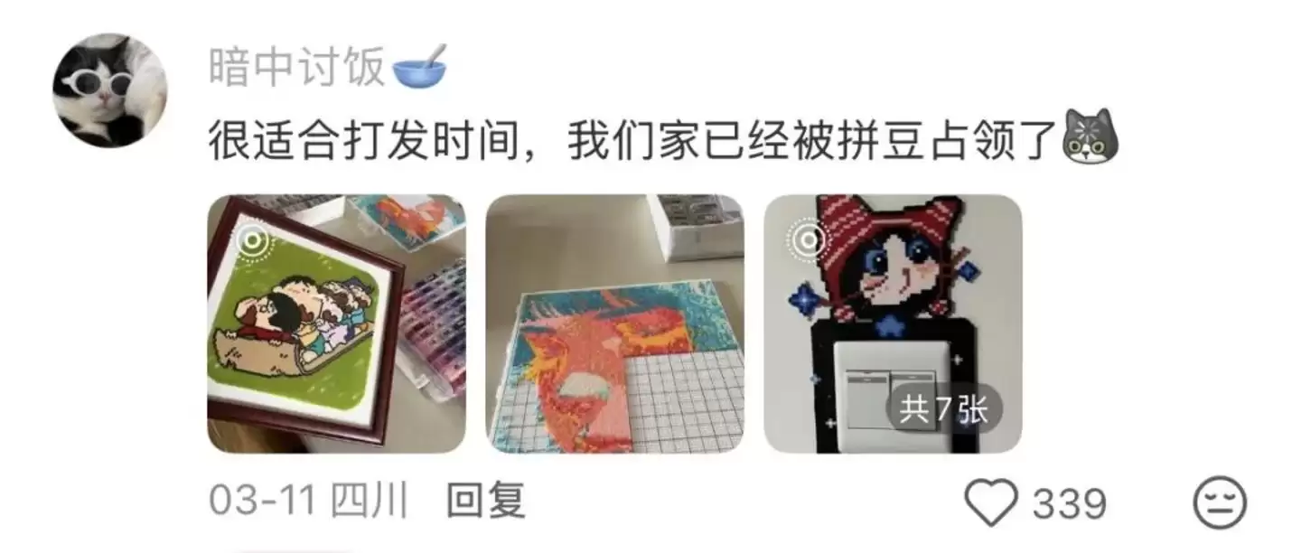 将拼豆、造景贴纸和3D打印并列观察,一个清晰的趋势浮现:越来越多的年轻人,愿意投入数小时专注于制作一件“非功利性”的实体物品。