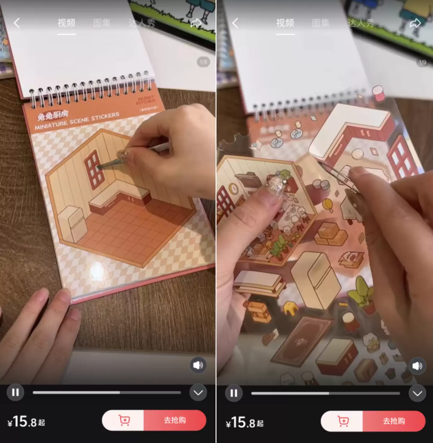 相较于拼豆的迅速出圈,造景贴纸的兴起更为温和,但其用户黏性极高,容易让人深度投入。