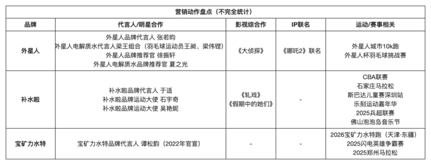 最后必须强调营销的杠杆价值。在渠道与产能这些硬实力之外,营销是品牌实现效率突破的关键工具。无论是签约代言人、综艺合作,还是影视植入与IP联名,核心目标都高度一致:撬动消费端注意力,并为渠道端注入信心。随着夏季销售旺季临近,电解质饮料在营销层面的投入与创意比拼,必将全面升级。
