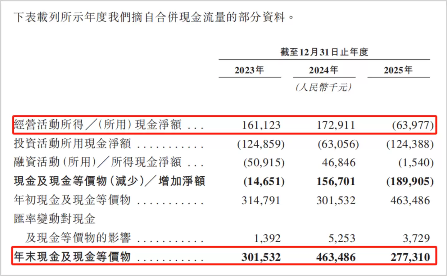 尽管业务规模扩张,但现金及等价物并未同步增长,反而从3.02亿元微降至2.77亿元,远不足以覆盖流动负债。现金流紧绷的根源在于,2025年经营活动现金流净额首次转负,为-6397.7万元。这主要源于存货和应收账款的大幅增加,同比分别增长44.7%和50.2%,达到6.34亿元和3.38亿元。