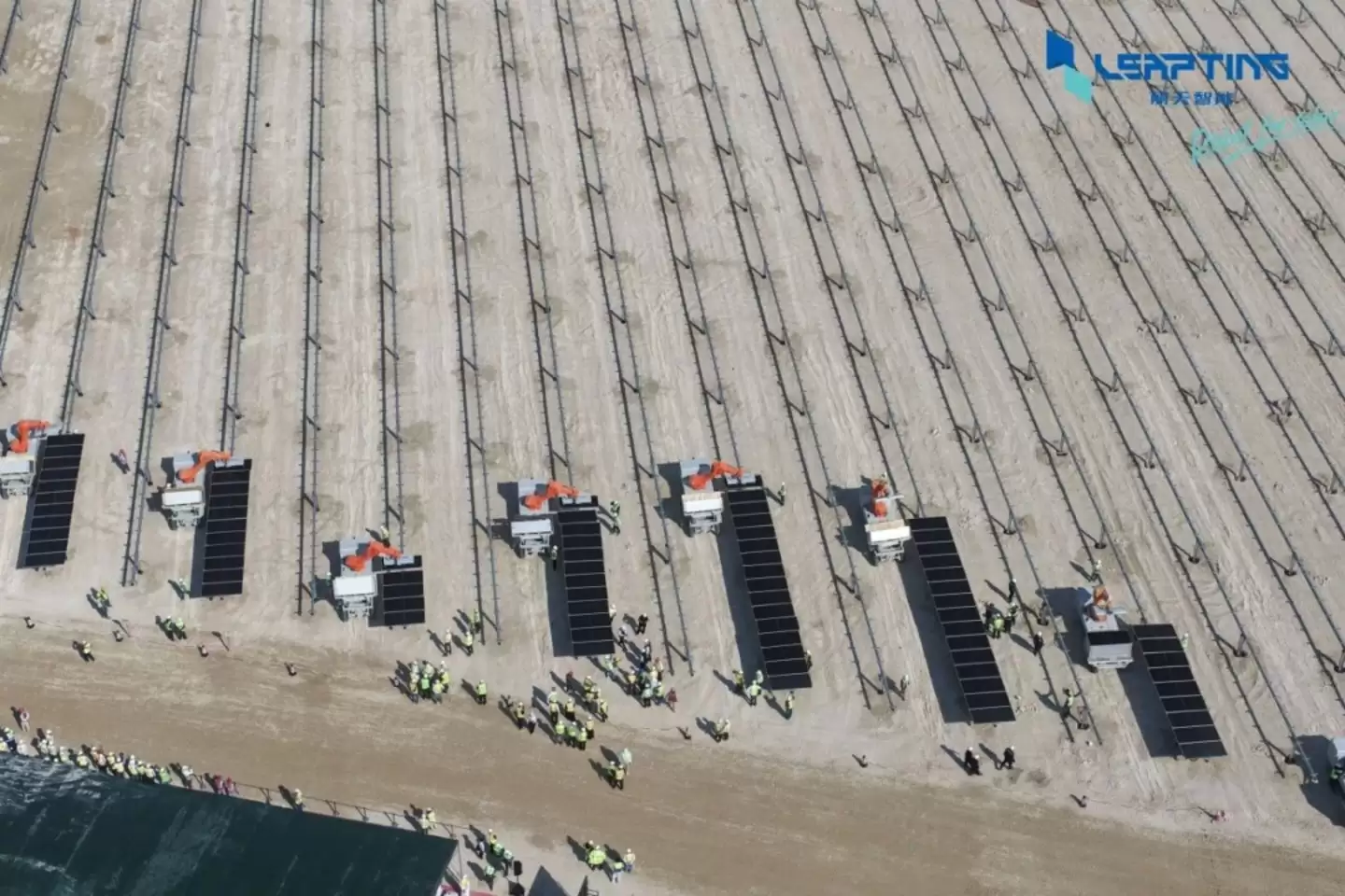 变革的拐点已经出现。2025年8月,丽天智能在中东斩获其创立以来规模最大的机器人智能应用项目——一个吉瓦级订单。60台履带式自动导航组件铺设机器人将部署在沙特、阿布扎比等地区。这些机器人将在45摄氏度高温与频繁沙尘暴中持续作业,以每30秒一块的稳定节拍,完成光伏组件的精准铺设。