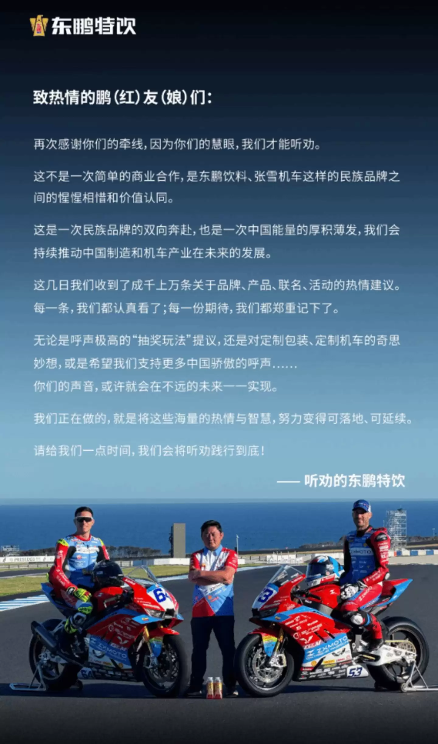 “张雪机车”赞助费不止5万!东鹏特饮独家回应,细节感人-万能的大叔