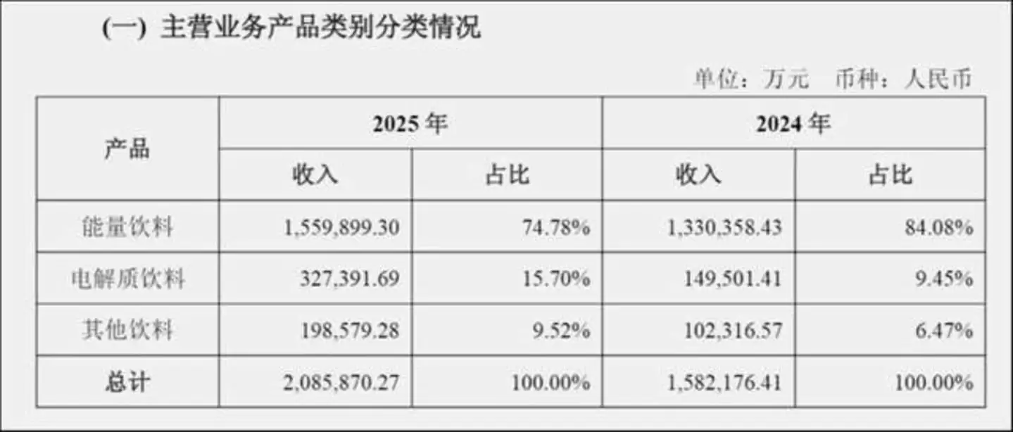 故事的高潮不止于此。就在张雪霸屏之际,东鹏同步交出了2025年的耀眼财报:
