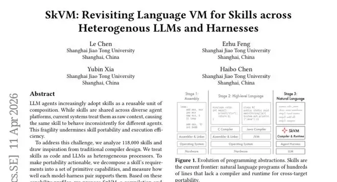 这并非虚构的场景,而是当前AI智能体在使用“技能包”时每天都在上演的真实困境。上海交通大学的研究团队在分析了超过11.8万个公开技能包后,发现这个问题的普遍性和严重性远超预期。为此,他们设计了一套名为SkVM的系统,其角色堪称技能包与AI模型之间的“高级翻译官”兼“智能调度中心”,目标是让任何能力水平的AI模型,都能正确且高效地执行技能包中的复杂指令。