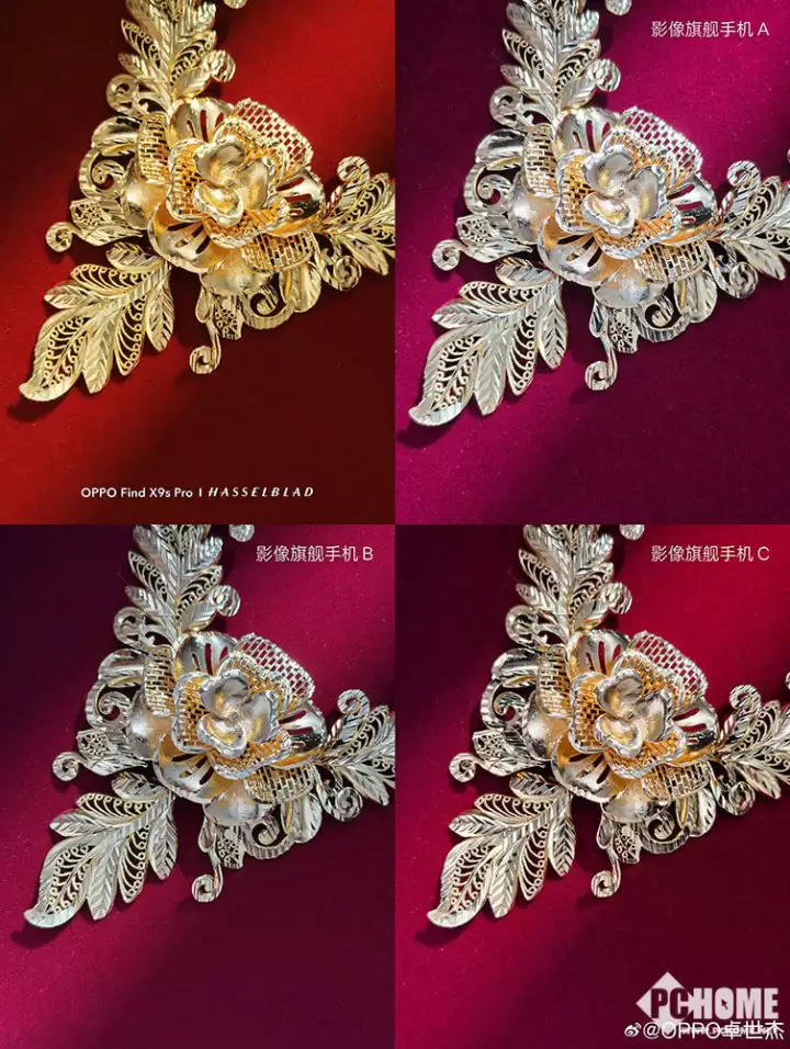 此次同步引入的DCG-HDR技术,实现了15EV的超高动态范围。在高对比度场景中,无论是强光下的金属反光还是暗部的织物纹理,细节都能得到完整保留。实测对比显示,在红色背景前拍摄金色物体时,Find X9s Pro能同时准确还原两种色彩,而常规方案容易出现色相偏移或细节合并。这标志着移动设备在色彩科学领域取得了实质性进展。