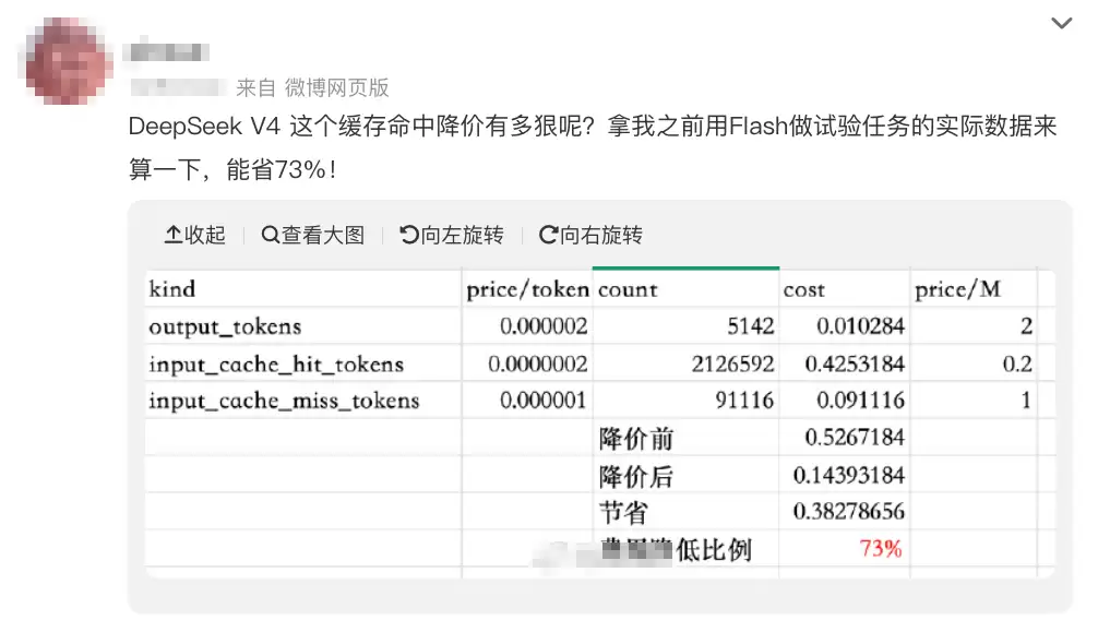 价格数字本身或许抽象,但用户的真实反馈最能说明问题。有微博用户根据自身的使用数据算了一笔账,结论是此次降价平均能节省73%的成本。这已经不是“打折”,而是“重造”成本结构。