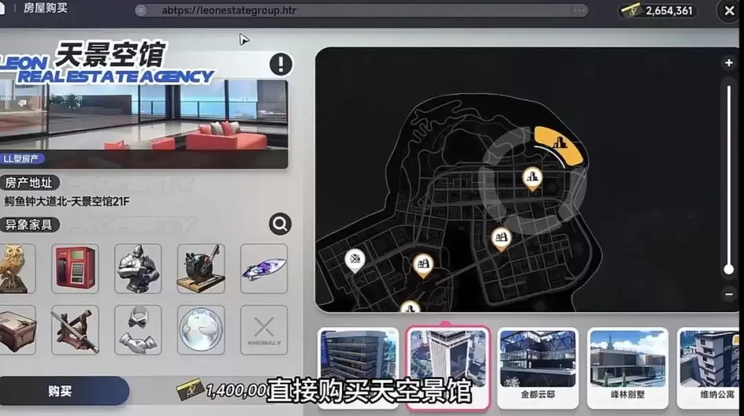 首先,你得打开房产界面,找到并购买那个140规格的“天景空馆”。这是第一步,也是关键的前置条件。