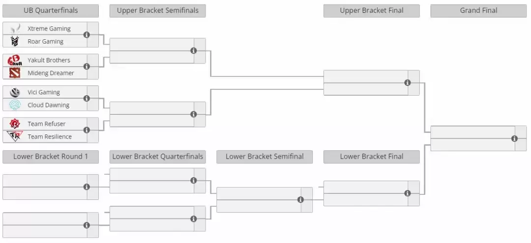 本次参赛的8支战队阵容已经确定,XG、VG、YB以及Refuser为直邀战队,而Resilience、Cloud Dawning、Mideng Dreamer和Roar则是通过海选脱颖而出的队伍。赛制方面采用双败淘汰制,其中胜者组首轮为Bo1,总决赛为Bo5,其余所有比赛均为Bo3。
