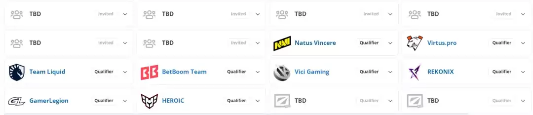 目前,各大赛区的预选出线战队已经全部出炉,包括中国赛区的VG,西欧赛区的NA VI、VP、Liquid,东欧赛区的BB,东南亚赛区的REKONIX,北美赛区的GL以及南美赛区的HEROIC。