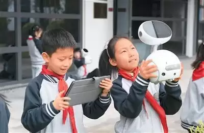 AI与青少年:一道关于成长边界的现实考题 浙江省金华市金东区实验小学的学生正在利用人