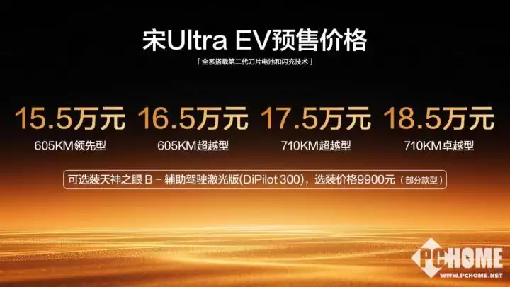 宋Ultra EV预售15.5万元起,全系搭载第二代刀片电池及闪充技术