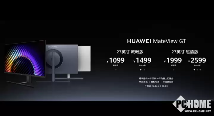 最终,这样一款全能型产品落在了极具竞争力的价位段。华&为MateView GT提供了多个版本选择:流畅版标准款售价1099元,SOUND款为1499元;超清版标准款1999元,SOUND款2599元。所有型号已于3月23日16:08正式开售。